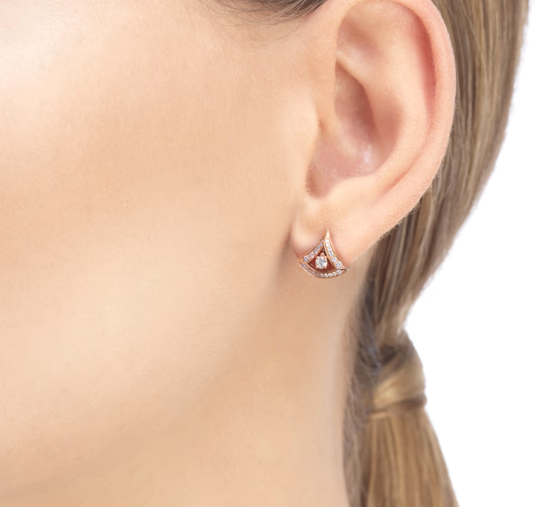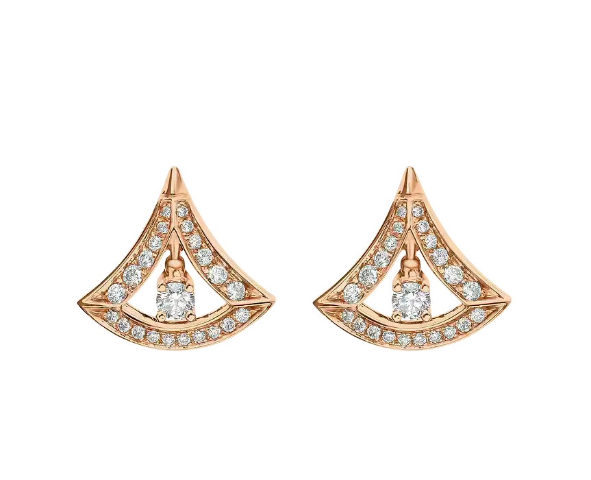 Divas' Dream 18 carat rose gold earrings, set with round brilliant-cut diamonds and pavé diamonds.