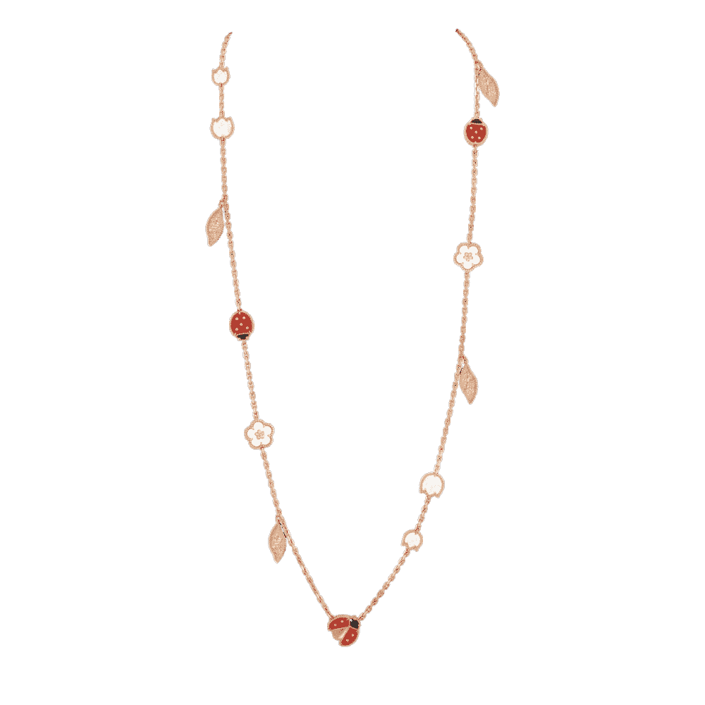 Materials 18-carat Rose Gold, White mother-of-pearl, Carnelian, Onyx Chain length 31.50 inches