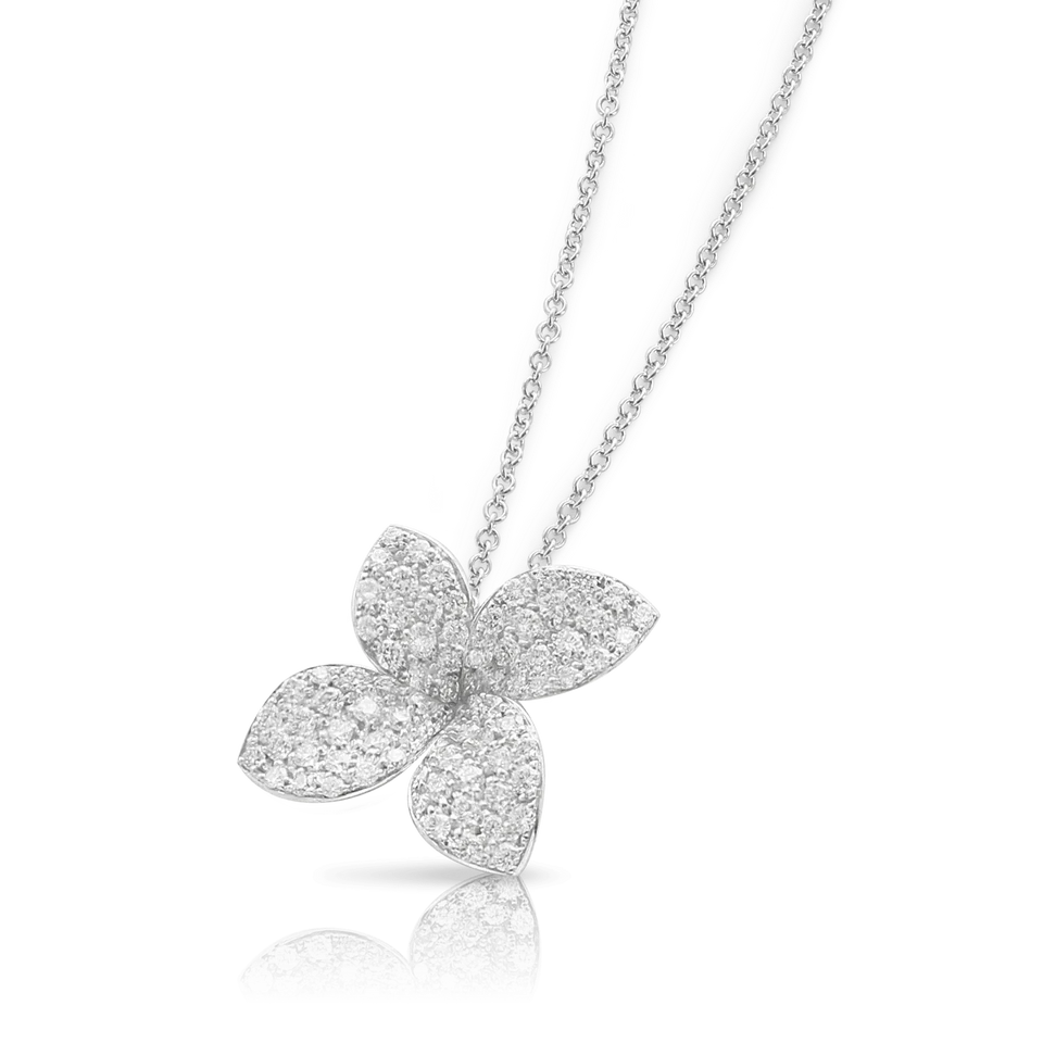 Petit Garden Necklace, White Gold with Diamonds, Medium Flower